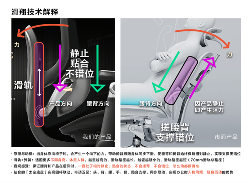 ○腰骶平衡模式:均匀分散压力,适合长时间伏案。后仰时腰靠同步滑翔,实现“躺下也不空腰”,经压力测试,骶骨区域支撑覆盖率100%。