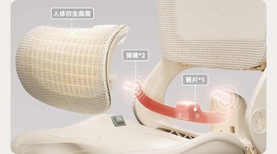 •复合弹弓骶枕,稳骨盆而非仅撑腰:采用专利“3框×3簧”结构,同步上托L3–L5腰椎、下撑S1–S3骶骨,解决传统腰枕只顶腰椎、忽略骶骨支撑的行业盲区。尤其针对小个子女生骨盆前倾更明显的特点,骶枕可自动贴合腰盆动力链,确保坐姿稳定。